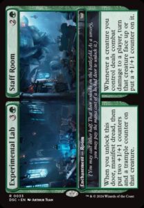 - Experimental Lab // Staff Room: A unique enchantment that introduces the Room subtype (newly introduced in Duskmourn), offering additional ways to manifest creatures and bolster your board.
